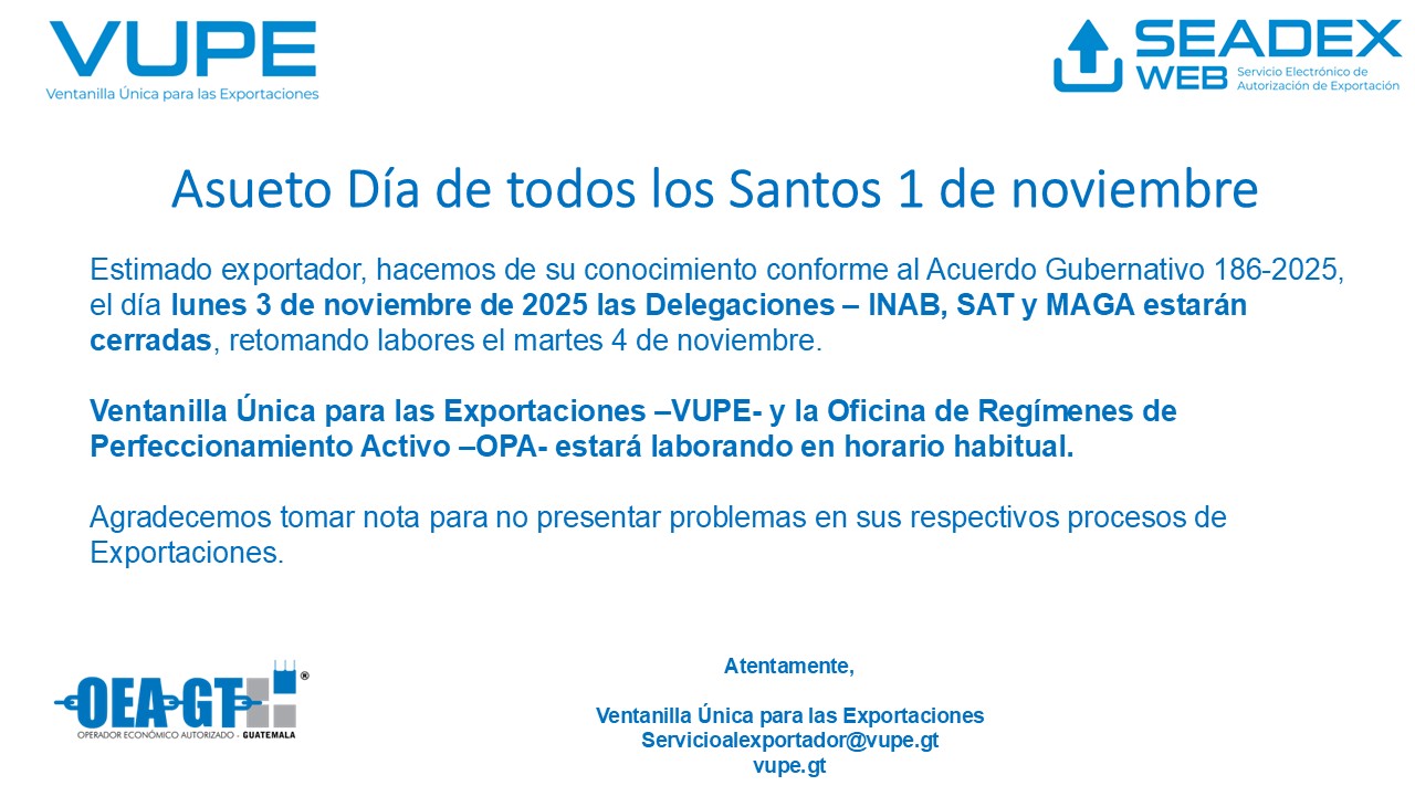 Autogestión para obtener servicios de la Ventanilla Única para las Exportaciones y la Oficina de Regímenes de Perfeccionamiento Activo.