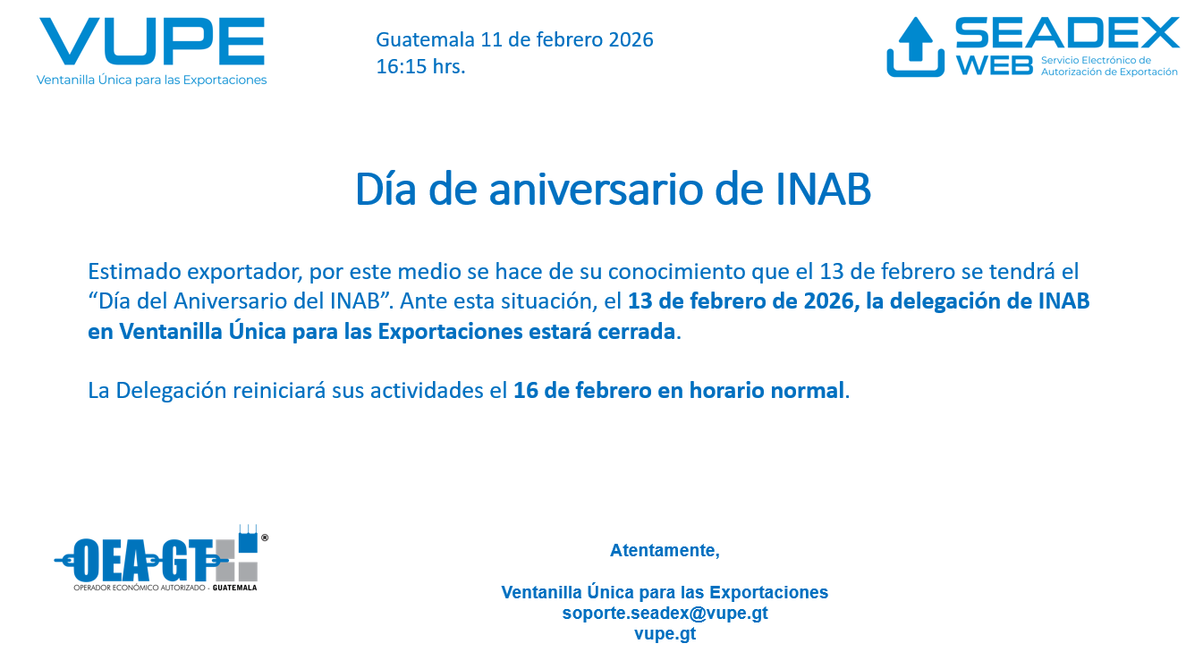 Para solicitar el reenvío de claves de acceso para el ingresa a la plataforma SEADEX WEB, debe de ingresar al siguiente enlace https://vupe.gt/recuperacion-de-claves-de-acceso-seadex/ completar la solicitud electrónica, debe de adjuntar los siguientes documento