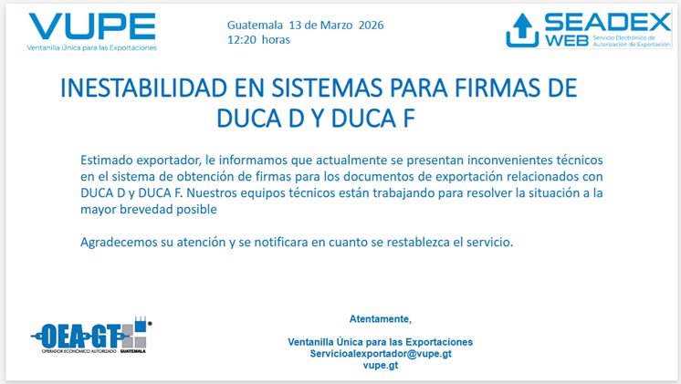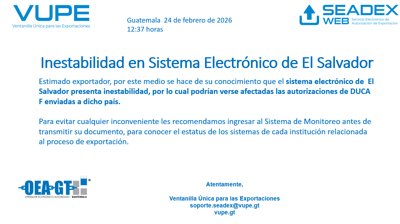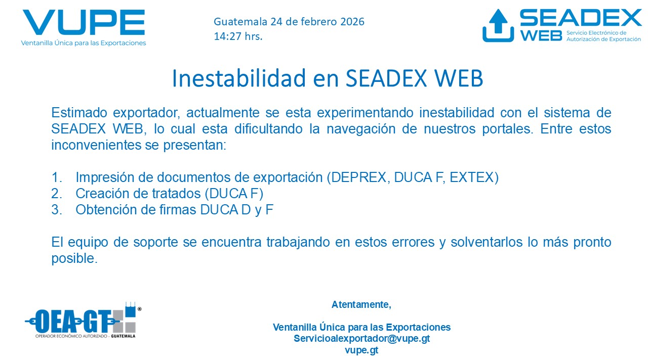 Para reactivar las claves claves de acceso para el ingresa a la plataforma SEADEX WEB, debe de ingresar al siguiente enlace https://vupe.gt/recuperacion-de-claves-de-acceso-seadex/ completar la solicitud electrónica, debe de adjuntar los siguientes documento