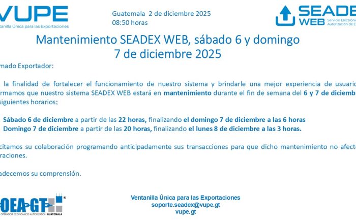 Estimado Exportador, hacemos la cordial invitación para que ingrese al Centro de Capacitación al Exportador -CCE- donde encontrara los capacitaciones relacionados el proceso de exportación, emisión de documentos de exportación a través de herramienta SEADEX WEB, integración de empresas Bajo Decreto 29-89 entre otros.