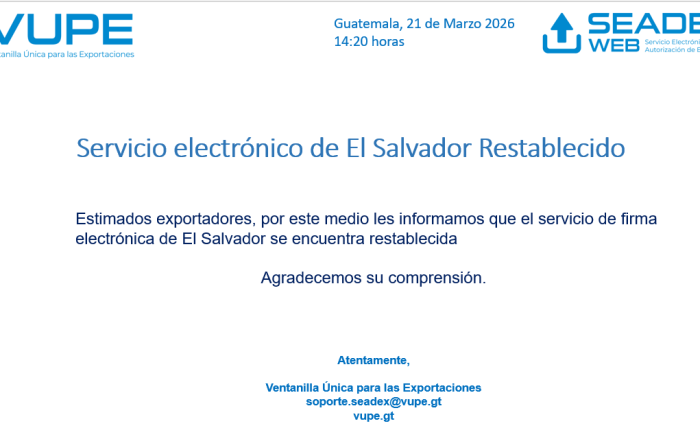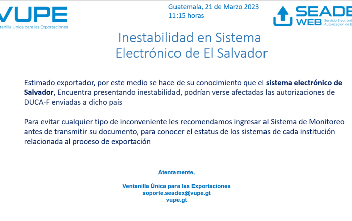Para consultar el manual de uso del sistema verificar en el portal web vupe.export.com.gt la sección Ayuda al Exportador/Guías.