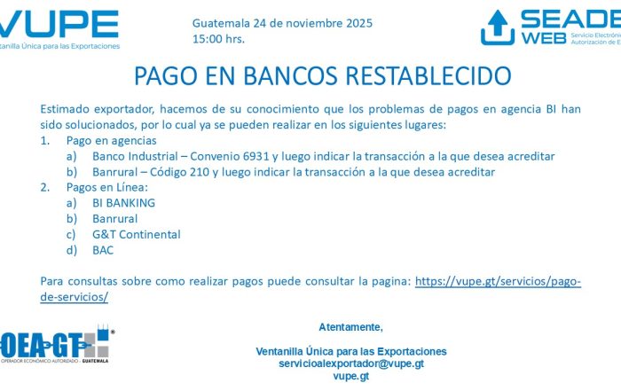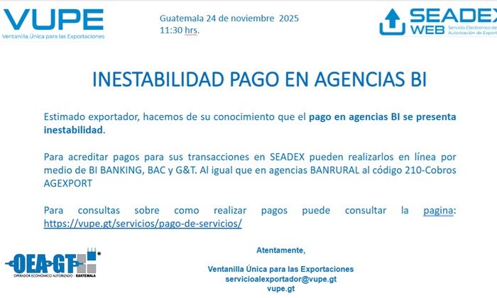 El servicio está disponible a través de SEADEX WEB en la dirección http://seadex.export.com.gt