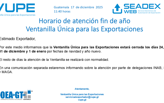 Costos: el costo del reportes es de Q.7.00 por hoja los cuales se debitarán de la cuenta de Autorización de Exportaciones.