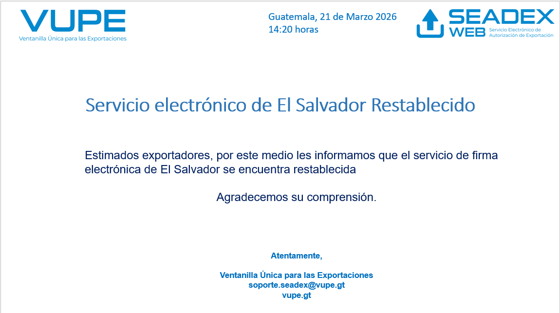 Estimado exportador, Tenemos el agrado de informarles que, en conjunto con la Superintendencia de Administración Tributaria -SAT-, hemos implementado una ampliación en la cantidad [...]