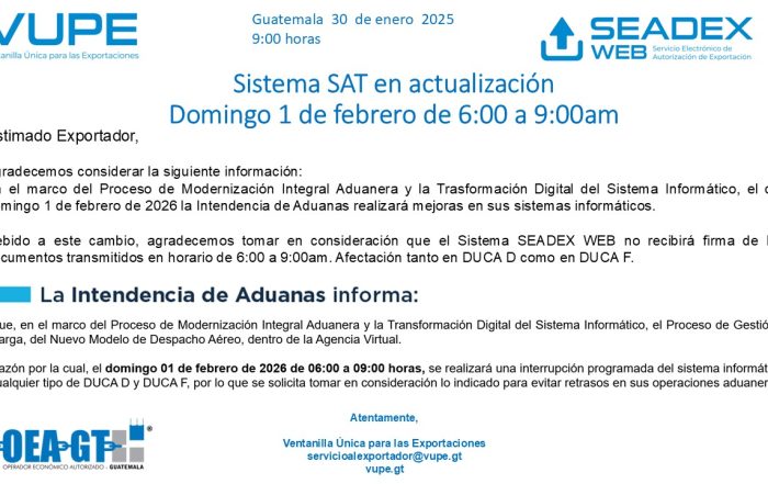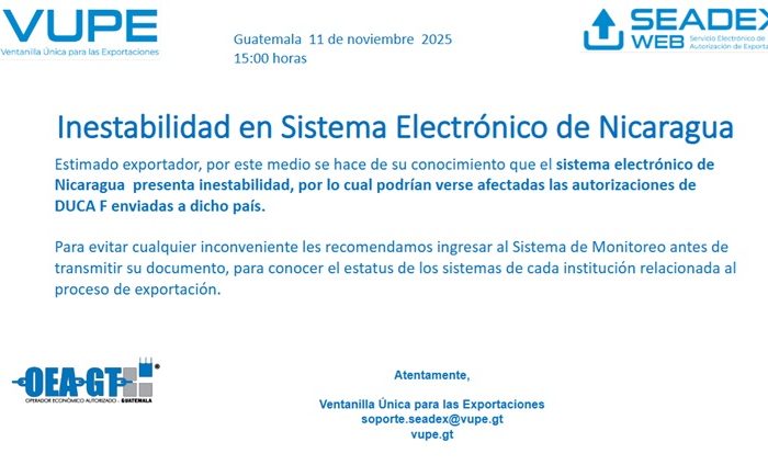 Puede escribir al correo de servicioalexportador@vupe.gt