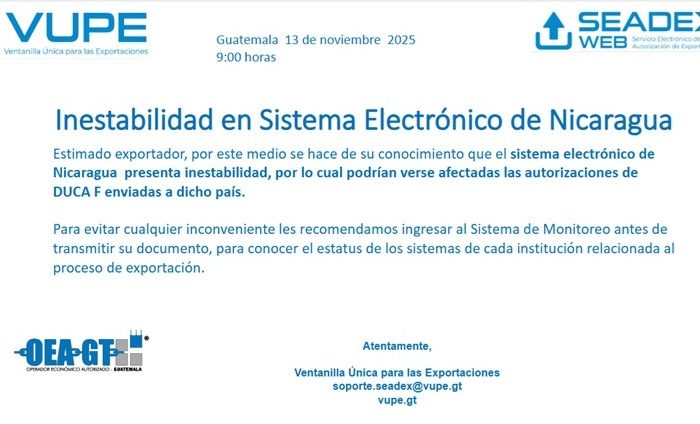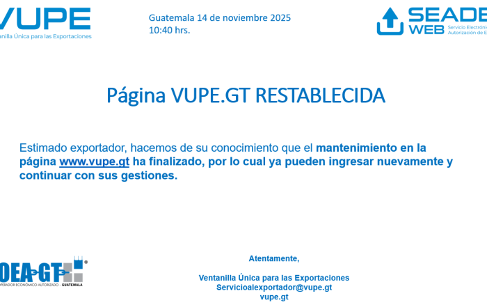 Para consultar el manual de uso del sistema verificar en el portal web vupe.export.com.gt la sección Ayuda al Exportador/Guías.